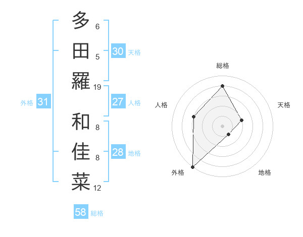 多田羅 和佳菜さんを姓名の画数から五運を鑑定