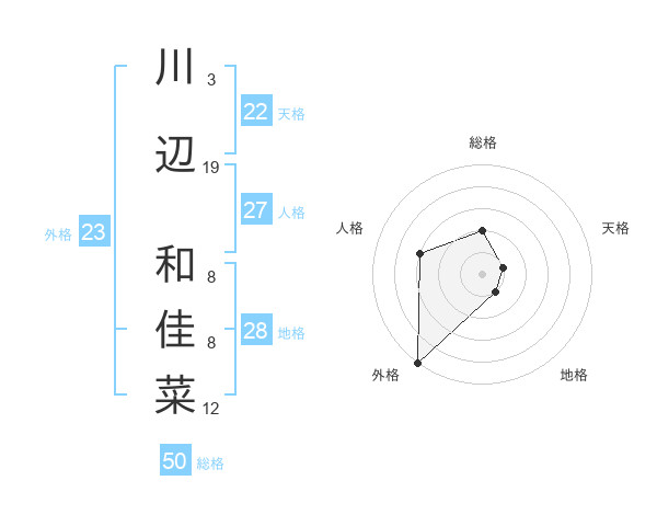 川辺 和佳菜さんを姓名の画数から五運を鑑定