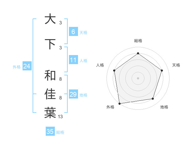 大下 和佳葉さんを姓名の画数から五運を鑑定