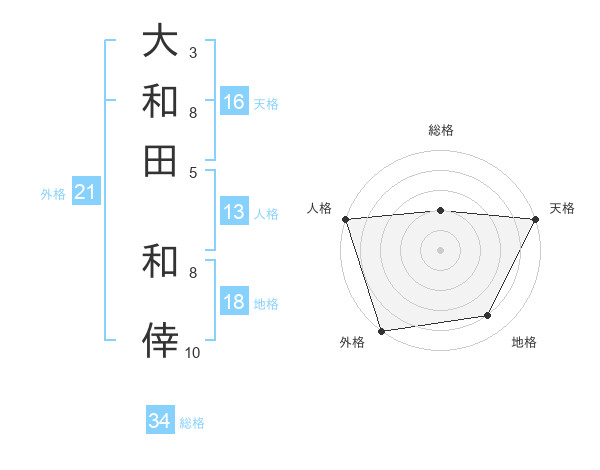 大和田 和倖さんを姓名の画数から五運を鑑定