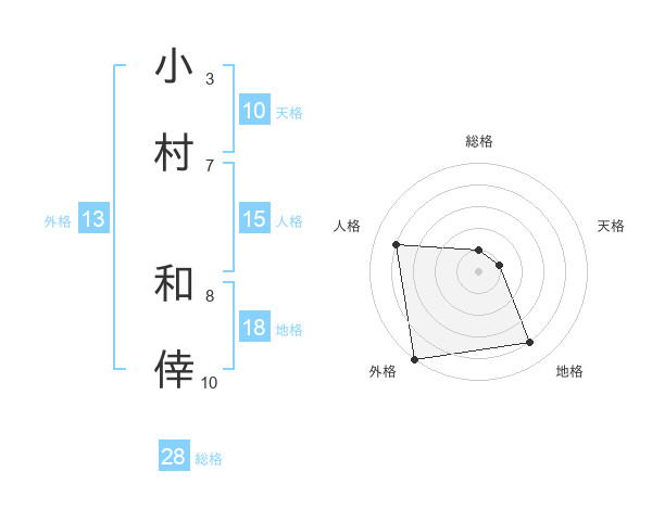 小村 和倖さんの外格は13画の5点!