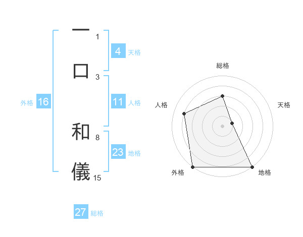 一口 和儀さんの総格は27画の3点!