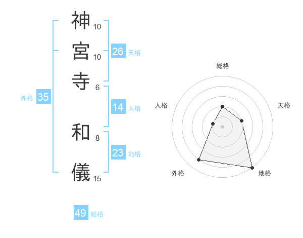 神宮寺 和儀さんの総格は49画の2点!