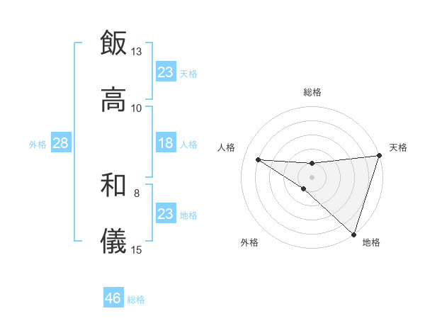 飯高 和儀さんの天格は23画の5点!