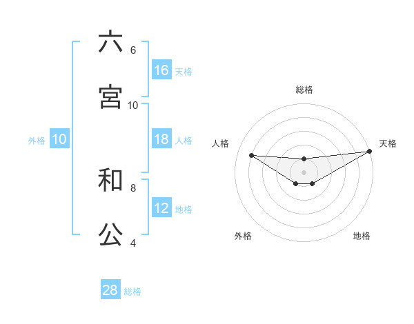 六宮 和公さんの天格は16画の5点!