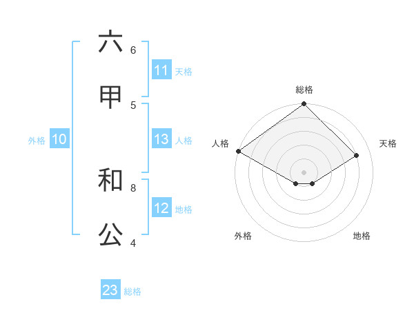 六甲 和公さんの総格は23画の5点!
