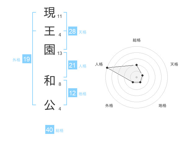 現王園 和公さんの総格は40画の2点!