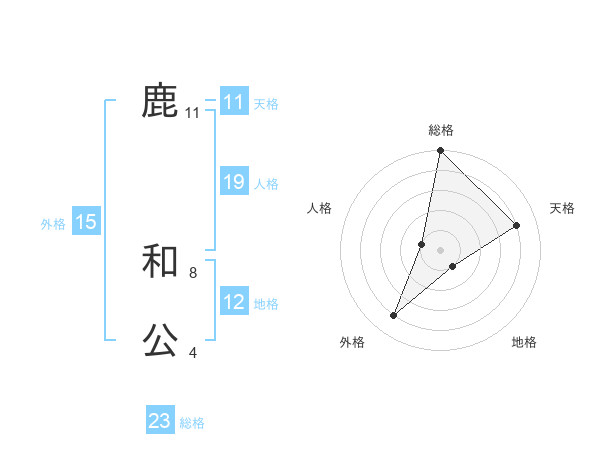 鹿 和公さんの外格は15画の4点!
