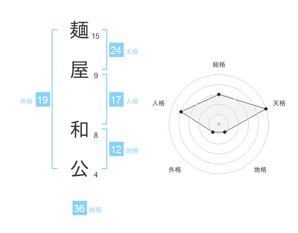 麺屋 和公さんを姓名の画数から五運を鑑定
