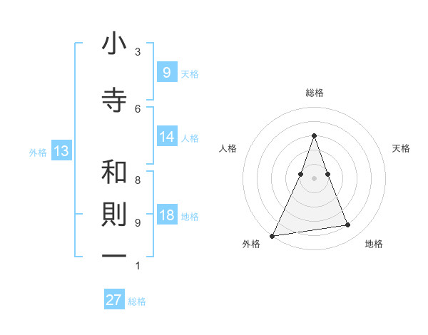 小寺 和則一さんを姓名の画数から五運を鑑定