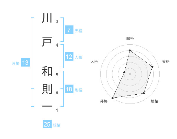 川戸 和則一さんの外格は13画の5点!