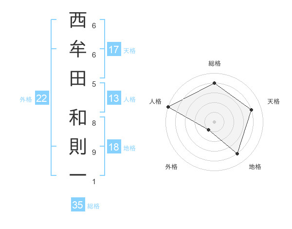 西牟田 和則一さんの総格は35画の4点!