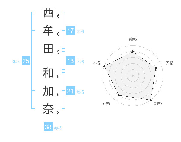 西牟田 和加奈さんを姓名の画数から五運を鑑定