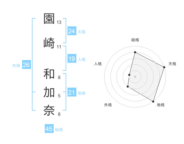 園崎 和加奈さんの総格は45画の4点!