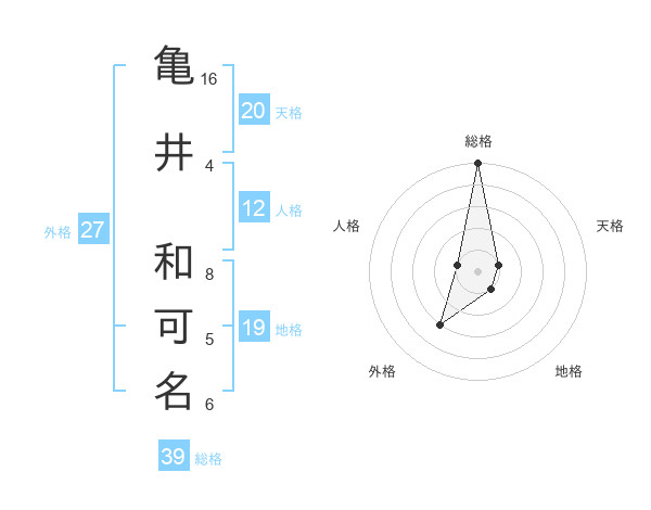 亀井 和可名さんの総格は39画の5点!