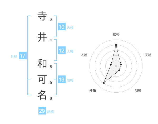 寺井 和可名さんの総格は29画の4点!