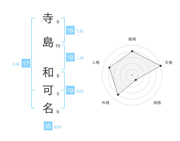 寺島 和可名さんの天格は16画の5点!
