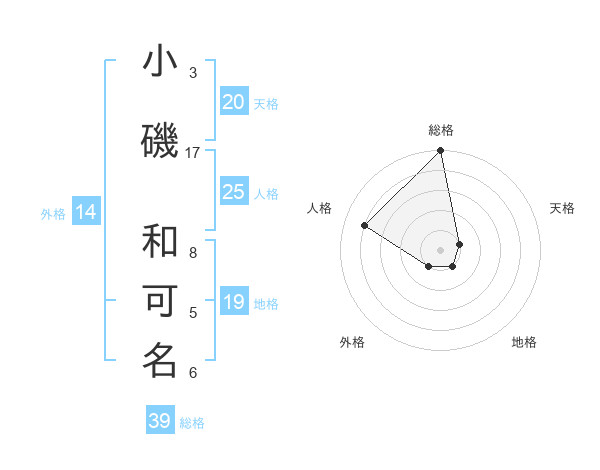 小磯 和可名さんの総格は39画の5点!