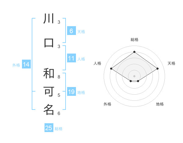 川口 和可名さんの総格は25画の4点!