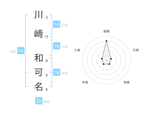 川﨑 和可名さんを姓名の画数から五運を鑑定