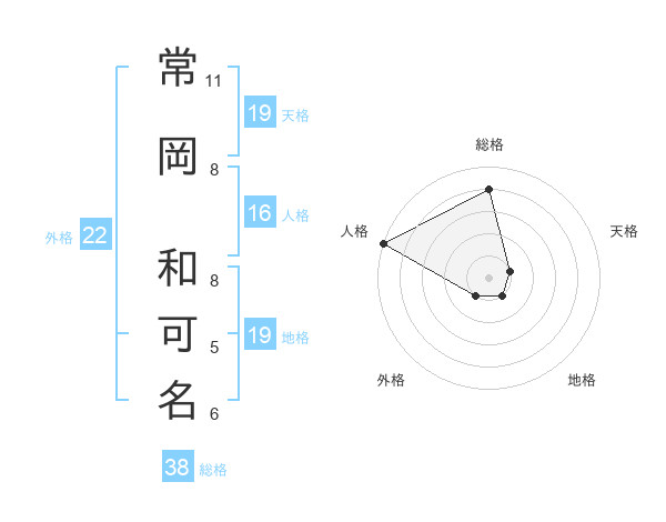 常岡 和可名さんを姓名の画数から五運を鑑定