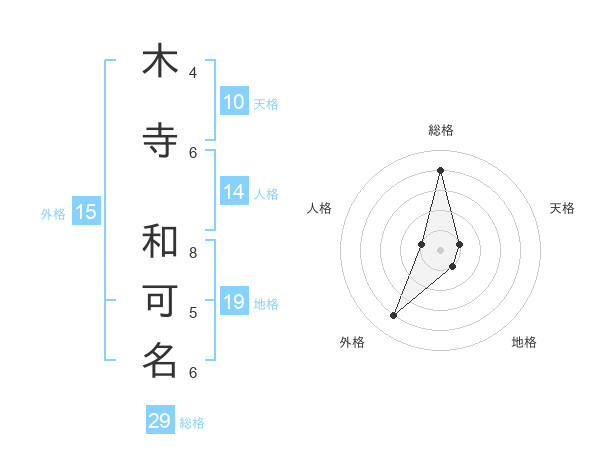 木寺 和可名さんの総格は29画の4点!