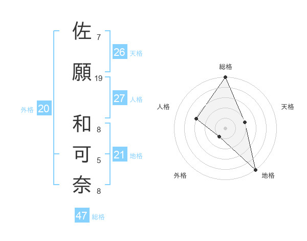 佐願 和可奈さんを姓名の画数から五運を鑑定