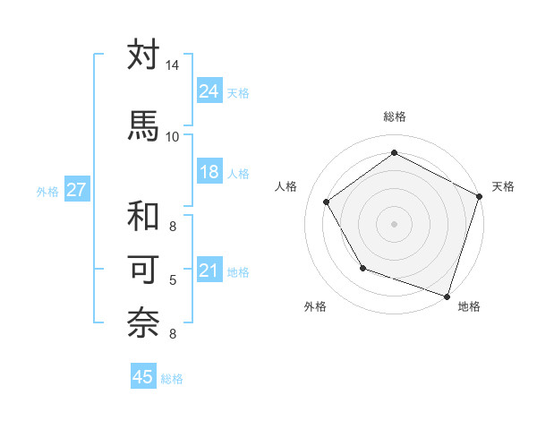 対馬 和可奈さんの総格は45画の4点!