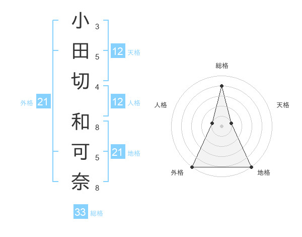 小田切 和可奈さんの天格は12画の1点!