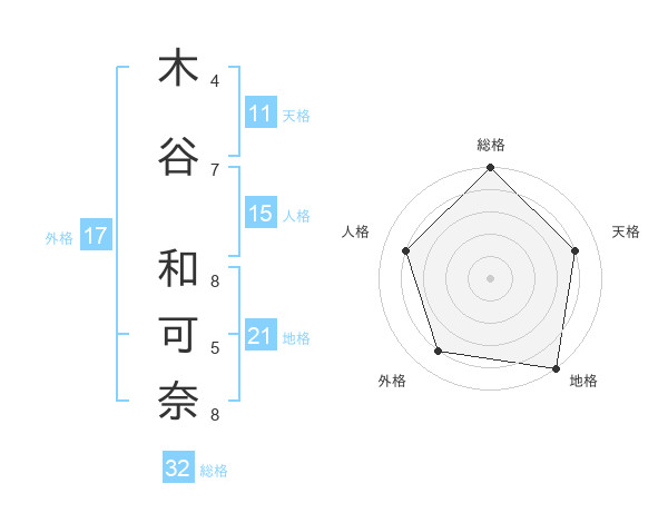 木谷 和可奈さんを姓名の画数から五運を鑑定