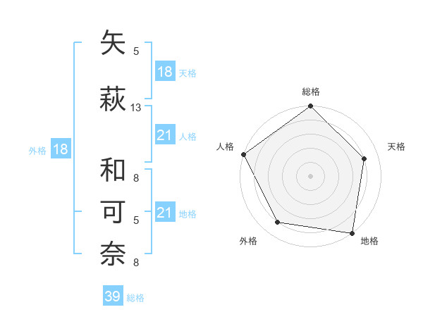 矢萩 和可奈さんを姓名の画数から五運を鑑定