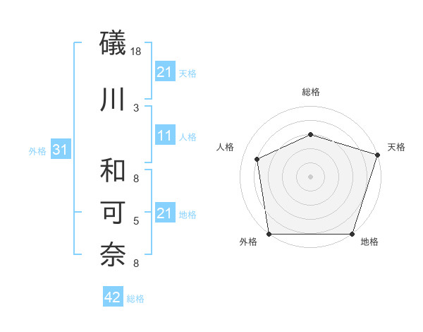 礒川 和可奈さんを姓名の画数から五運を鑑定