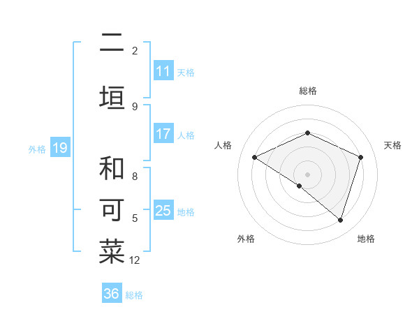 二垣 和可菜さんを姓名の画数から五運を鑑定
