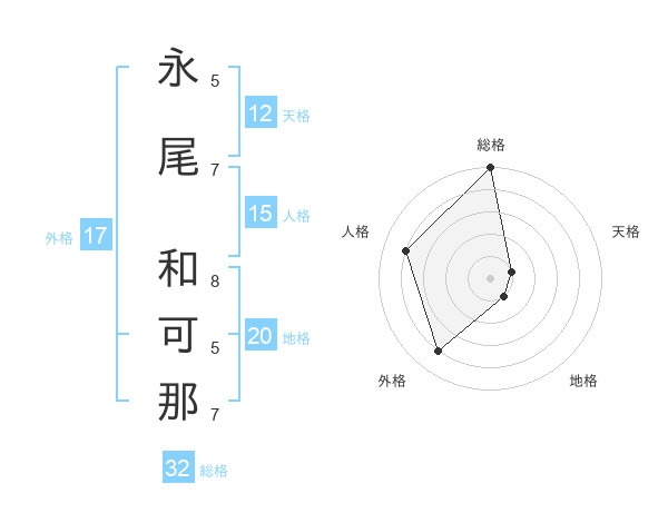 永尾 和可那さんの天格は12画の1点!