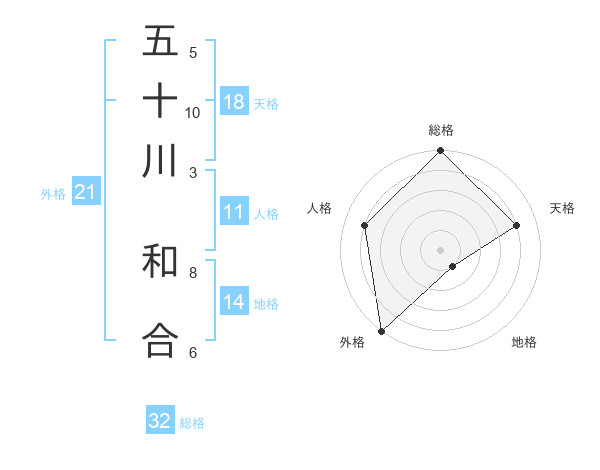 五十川 和合さんの総格は32画の5点!