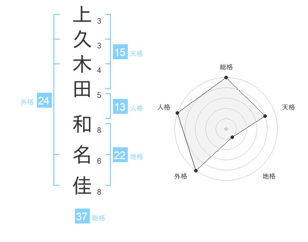 上久木田 和名佳さんを姓名の画数から五運を鑑定