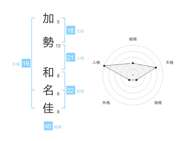 加勢 和名佳さんを姓名の画数から五運を鑑定