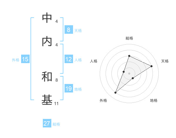 中内 和基さんの天格は8画の4点!