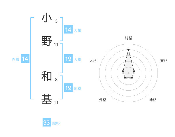 小野 和基さんの総格は33画の4点!
