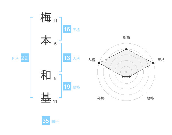 梅本 和基さんの天格は16画の5点!