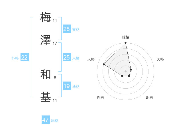 梅澤 和基さんを姓名の画数から五運を鑑定