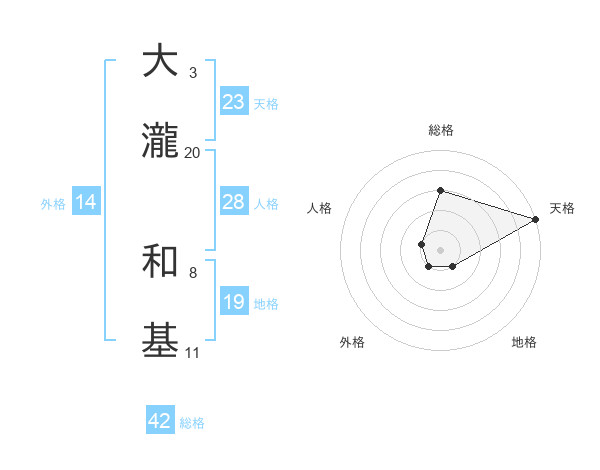 大瀧 和基さんを姓名の画数から五運を鑑定