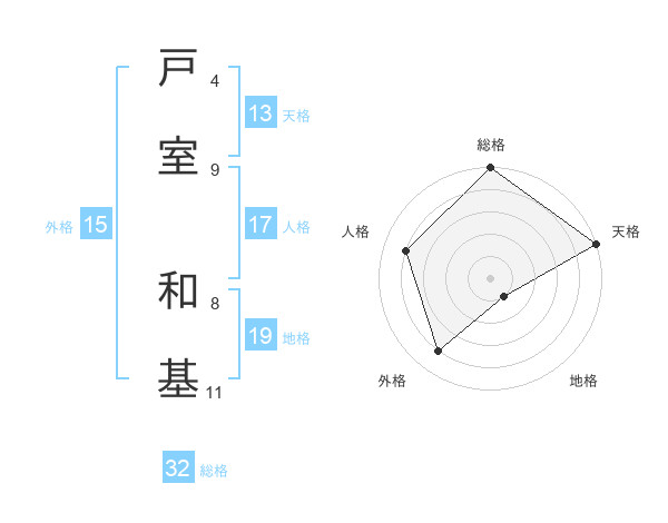 戸室 和基さんの総格は32画の5点!