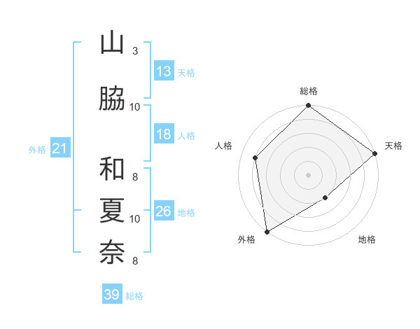 山脇 和夏奈さんの天格は13画の5点!