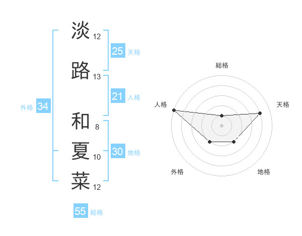 淡路 和夏菜さんの天格は25画の4点!