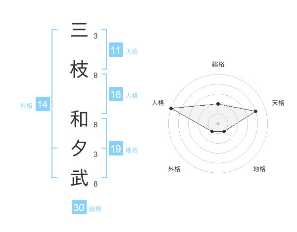 三枝 和夕武さんを姓名の画数から五運を鑑定