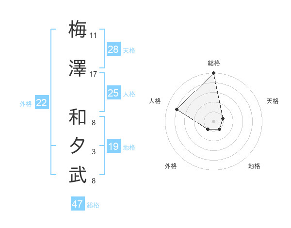 梅澤 和夕武さんの総格は47画の5点!