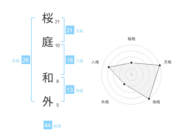 桜庭 和外さんを姓名の画数から五運を鑑定
