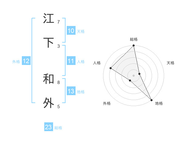 江下 和外さんの総格は23画の5点!