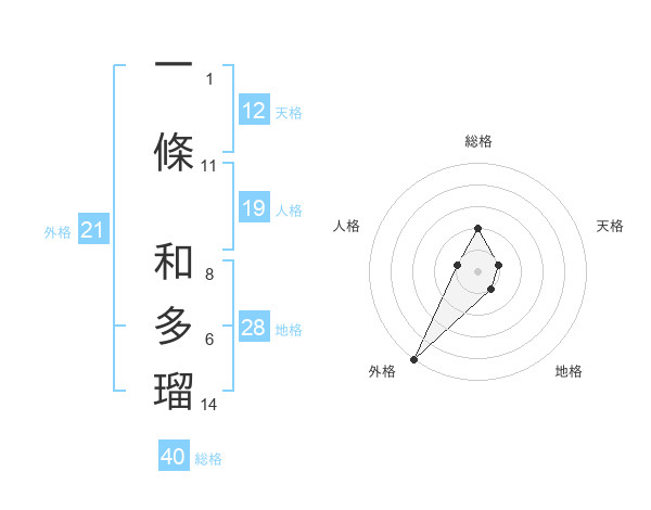 一條 和多瑠さんを姓名の画数から五運を鑑定